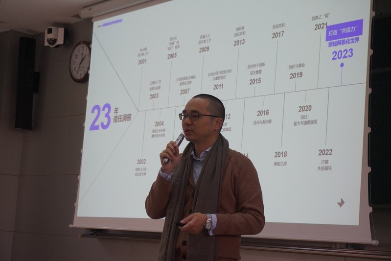 12月21日下午,爱德曼中国区高级副总裁、《国际公关》专栏作者、金旗奖专业委员会可持续发展单元副组长仲佳伟先生走进《公共关系学》课堂。仲先生讲座的主题是《激发行动,赢得信任——企业可持续发展行动与叙事》。讲座由威廉希尔(WilliamHill-中文官方网站)百人计划研究员纪盈如老师主持。