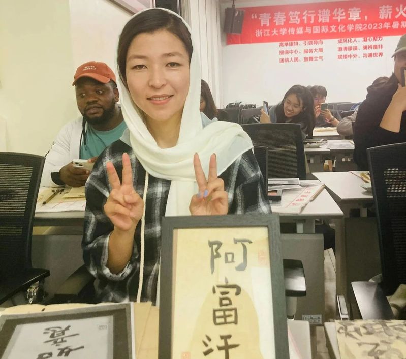 除了汉语角,张丽萍也开办了跨文化训练营项目,其中包含书法体验、茶博馆参观、跨文化讲座分享等,这些既有趣又富有中国味的活动为留学生们提供了切身体验中华文化的平台。在本学期的昆曲学习活动中,张丽萍还邀请了浙江京昆艺术中心国家一级演员杨崑来与同学们近距离交流,从“原来姹紫嫣红开遍”到“朝飞暮卷,雨丝风片”,一唱三叹,余韵悠长。通过各类精彩纷呈的体验活动,张丽萍探索着专业教学的创新路径,也向来自不同文化背景的学子们展现了中华文化美美与共的种种可能。