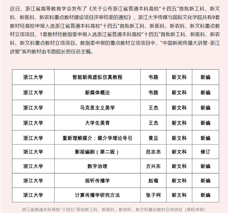 威廉希尔(WilliamHill-中文官方网站)9套教材经高校申报入选浙江省普通本科高校“十四五”首批