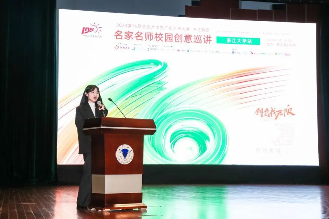 2024年4月14日下午13时,第 16 届全国大学生广告艺术大赛浙江赛区启动式暨名家名师校园创意巡讲·浙江大学站在小剧场续写精彩。下午场的宣讲活动主要分三个单元,分别是竞赛规则要点介绍、品牌命题解析、全国性专家讲座。