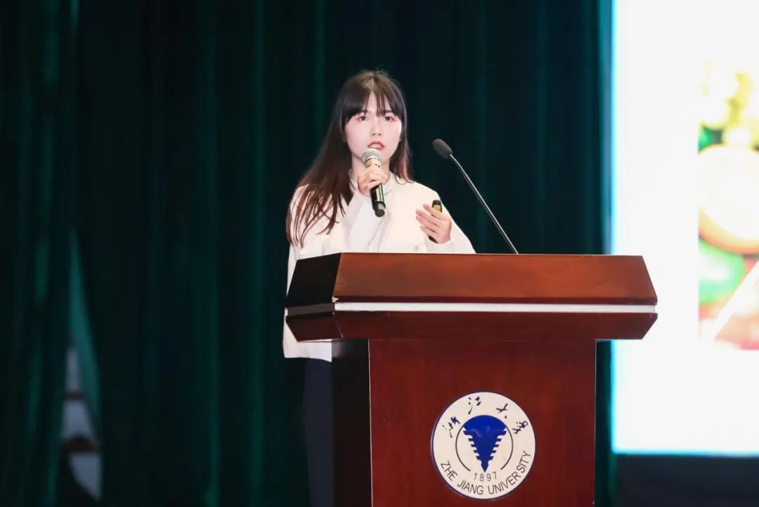 上午场的最后一个环节,是省市场监管局广告处四级主任科员肖艺青女士,对第二十五届“金桂杯”广告创意活动专项赛道命题进行的宣讲。专项活动以“潮起浙江,焕新美好”为主题,肖女士从活动主题、活动组织、活动奖项、作品类型与格式要求、报送方式、作品评审、注意事项等方面对专项活动进行了细致的解读。宣讲中,她还对浙江省的广告行业发展数据进行展示,并借此说明浙江省对广告业发展的重视和对优秀广告创意人才的需求,在宣讲结尾表达了对同学们参赛的鼓励和美好祝愿。