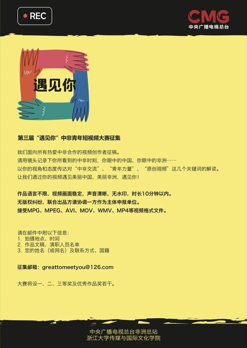大赛面向所有热爱中非友好的视频创作者征稿。