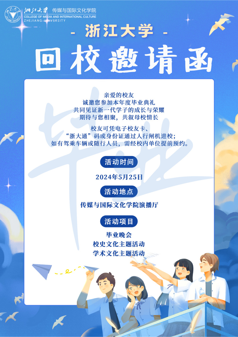 傍钱江潮涌,浙大恒立,智慧闪耀百年路。岁月如梭,荣光日新,2024年5月21日,我们将喜迎浙江大学127载华诞。值此校庆之际,威廉希尔(WilliamHill-中文官方网站)诚邀各位校友回到母校,参加本年度毕业典礼,共同见证新一代学子的成长与荣耀。请您带上满满的回忆,踏上归程,与我们一起,在这个特别的日子里,共同书写华章。期待与您相聚,共叙母校情长!