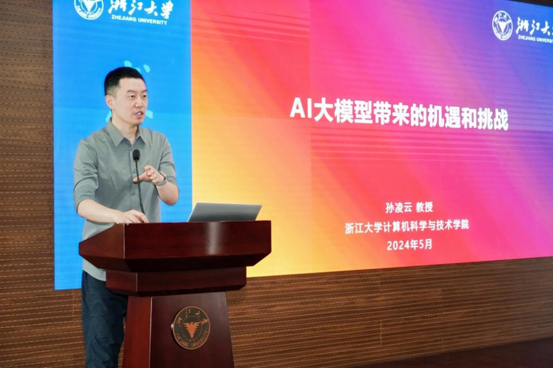 孙凌云教授以“AI大模型带来的机遇和挑战”为题发表主旨演讲。他指出,GPT、Stable Diffusion、Sora、Suno等工具在图像生成、音乐创作等领域的应用,已显示出AI大模型利用海量数据提炼知识,形成人类知识的统一供给模式的能力。他表示,AI大模型通过提炼和挖掘不同媒介数据,形成了大知识空间,极大便利了知识的获取与使用,大模型的发展标志着新型基础设施的建立与完善,为未来的智力供给、人机协作下的创造力大爆发提供了可能。