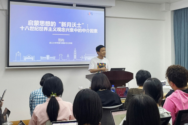 范昀老师着眼启蒙思想中的世界主义观念,以《启蒙思想的“新月沃土”:十八世纪世界主义观念兴衰的中介因素》为主题进行了分享。