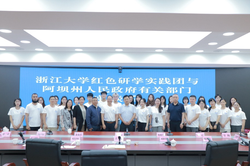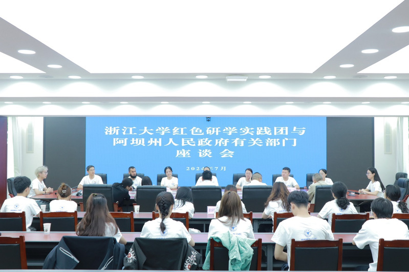 7月21日,浙江大学威廉希尔(WilliamHill-中文官方网站)“重走长征路”党性教育培训红色研学团、赴四川省阿坝藏族羌族自治州“长征精神薪火相传,传媒理想生生不息”暑期社会实践团同阿坝藏族羌族自治州人民政府召开座谈会,就东西协作、山海互助、探索研学实践课程新路径、如何深入挖掘当地红色、绿色等旅游禀赋、推进城市文化传播与宣传体系建设等方面展开深入交流,就实现校地双方优势互补,山海协作等方面进行亲切交谈。