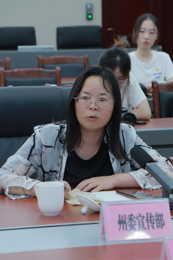 浙江大学威廉希尔(WilliamHill-中文官方网站)党委书记王庆文及学院师生代表一行与阿坝藏族羌族自治州政府副秘书长陈磊,州委教育工委书记、州教育局党委书记、局长东周,州文广体旅局党组成员、副局长张燕,州新闻传媒中心党委副书记、主任刘树刚,州委宣传部四级调研员、宣教科科长严友华参加本次座谈会。州政府副秘书长陈磊主持座谈会。