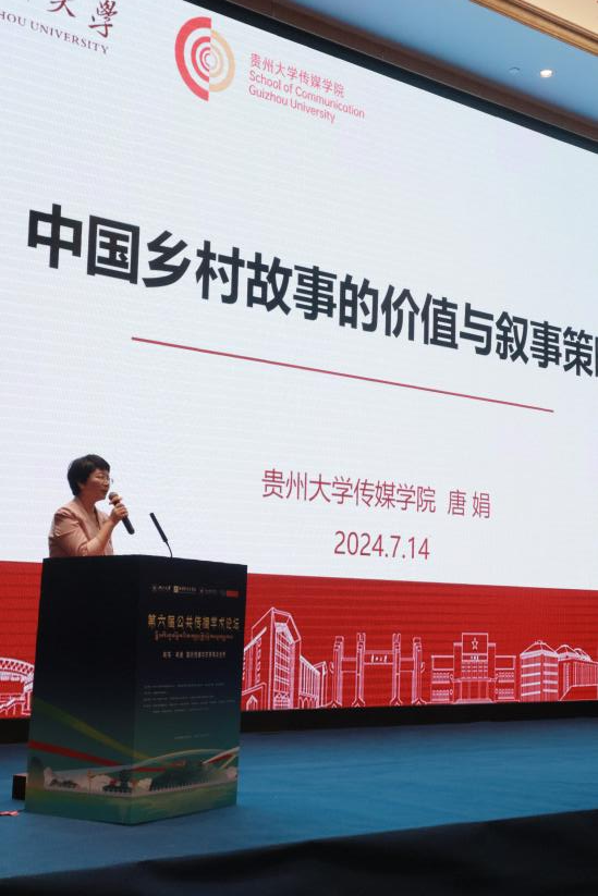 贵州大学传媒学院副院长唐娟副教授围绕《中国乡村故事的价值与叙事策略》作主旨演讲。唐教授首先介绍了中国乡村故事的价值,乡村蕴含着丰富的故事元素,讲好中国乡村故事,对于加快构建中国话语和叙事体系,全面提升国际传播效能具有重要意义。她从中国乡村故事的叙事策略层面进行了详细探讨,强调中国乡村故事,要回归乡土性,挖掘乡村文化资源、展示乡村独特景观;要聚焦人民性,激发农民的主观能动性,以接地气的方式展现乡村生活的人民性,要凸显时代性,重视农耕文明与现代文明的有机融合,本土话语与国际视野相结合。