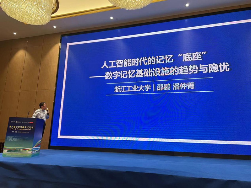 浙江工业大学人文学院副院长邵鹏教授围绕《人工智能时代的记忆“底座”——数字记忆基础设施的趋势与隐忧》作主旨演讲,他指出,在发展的当下,人工智能逐渐成为“记忆生产者”,全球数字记忆正面临重建记忆基础设施的核心命题,作为数字记忆的本源和“全球脑”范式的关键,数字记忆基础设施将不可避免的受到全球技术发展不平衡的影响,有三方面的集中表现:第一,记忆在“云端”汇聚;第二,记忆在平台控制下呈现离散的状态;第三,记忆在智能技术的干预下走向新的的记忆生态。其报告进一步管窥数字记忆系统的发展趋势,为如何在人工智能时代实现构建连接“断层”数字记忆的路径,建设更包容普惠、更有韧性的全球数字记忆基础设施提供有益思考。