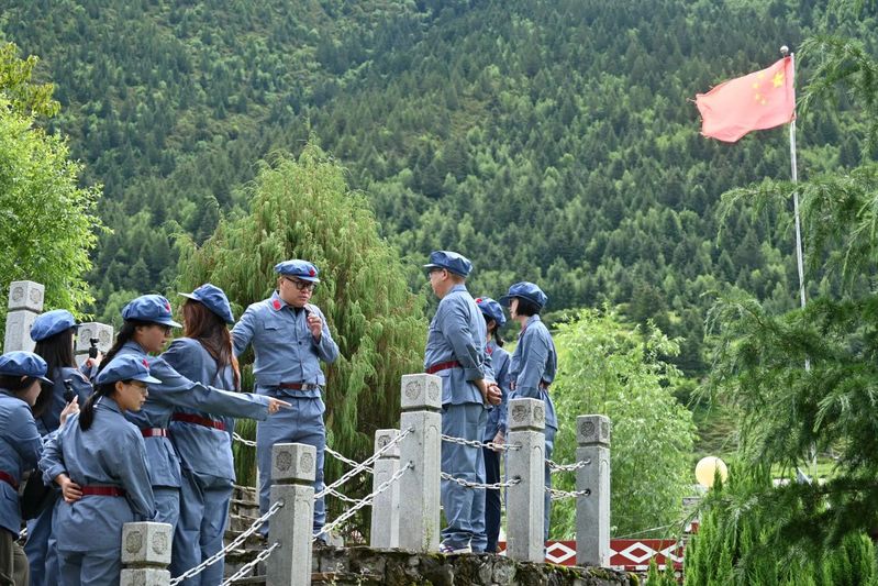 梦笔山是中国工农红军长征时翻越的第二座大雪山,最高峰海拔近4500米,空气稀薄、气温清冷。尽管部分成员出现了一定程度的高原反应症状,他们也仍然坚持攀爬不掉队,更加切身体会到了红军当年爬雪山的艰难与无畏。