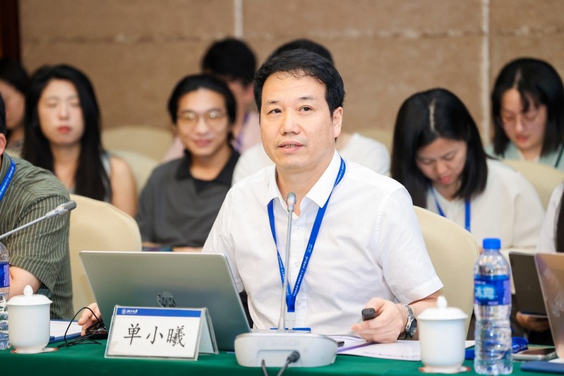 (图为单小曦教授正在演讲)