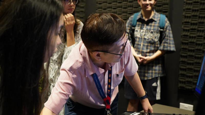 讲座结束后,同学们参观了黄金辉传播与信息学院的录音棚、实验室和导播室,切身体验和了解了学院学生的专业学习和实践情况。此外,同学们还跟随工作人员参观了校园,打卡了地标性建筑“蜂巢”、亚洲最大的木构建筑Gaia,以及花草繁茂的云南园。
