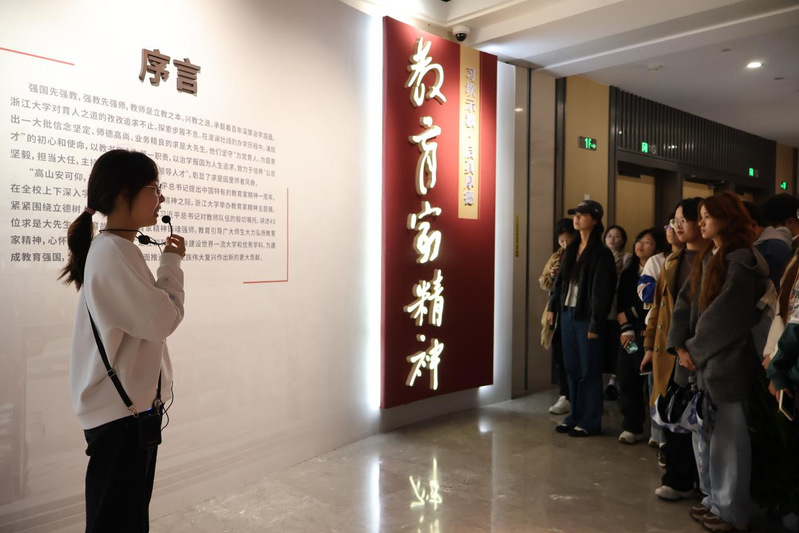 在讲解员的细致讲解下,45位求是大先生“为党育人,为国育才”的感人故事逐一呈现。他们中有科研领域的领军人物,为国家科技进步贡献智慧;有教学一线的深耕者,培养出一批批优秀人才;也有在社会服务和文化传承方面作出突出贡献的杰出代表。现场展出的手稿、专利书、教材等珍贵藏品,更是让学员们深刻感受到了浙大教育家的深厚底蕴和崇高精神。