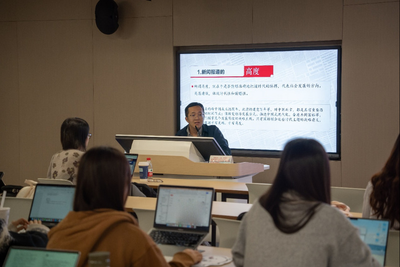 了解定义之后,严沁表示,实际的经验在新闻工作中同样重要,有些问题是会在实践工作中遇到的,在面对这些突发情况时,成熟的新闻工作人员应当如何解决?结合自身多年的新闻工作经验,他通过生动形象的案例,让学生们仔细分析,以妙趣横生的方式帮助学生们感受问题,提升解决问题的能力。