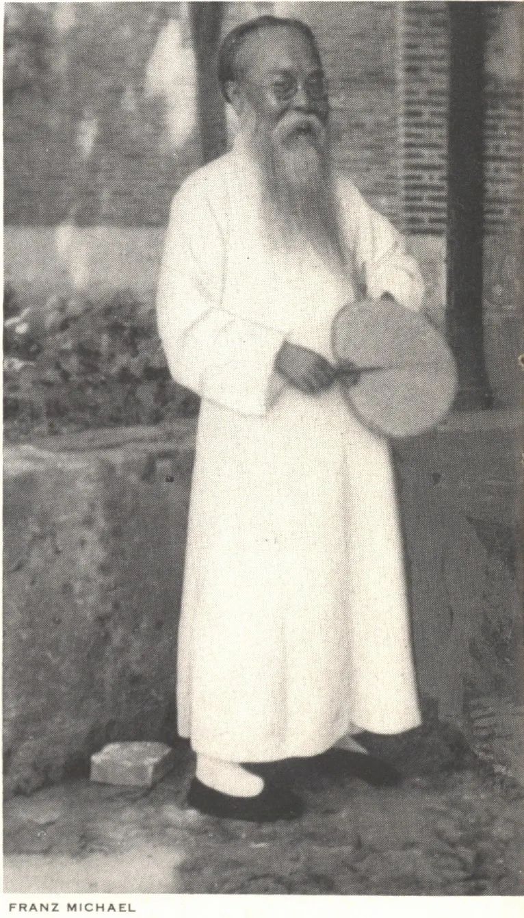 在这本英文杂志里,我们还意外发现了梅谷在江西泰和拍下的儒学大师马一浮先生,他身着一袭白衫,手持蒲扇,喜笑颜开。这样的笑容在他存世的照片中很少见。