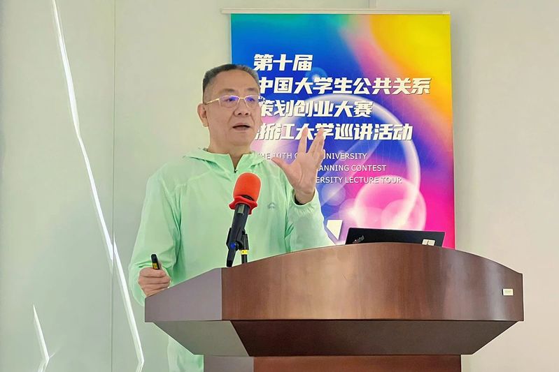 第十届大赛评委、华扬联众副总经理潘建新,学院策略传播学系主任章燕,拜耳(中国)有限公司雇主品牌经理王昳琼、高级招聘专家韩雪莹以及浙江大学的师生参加了巡讲。
