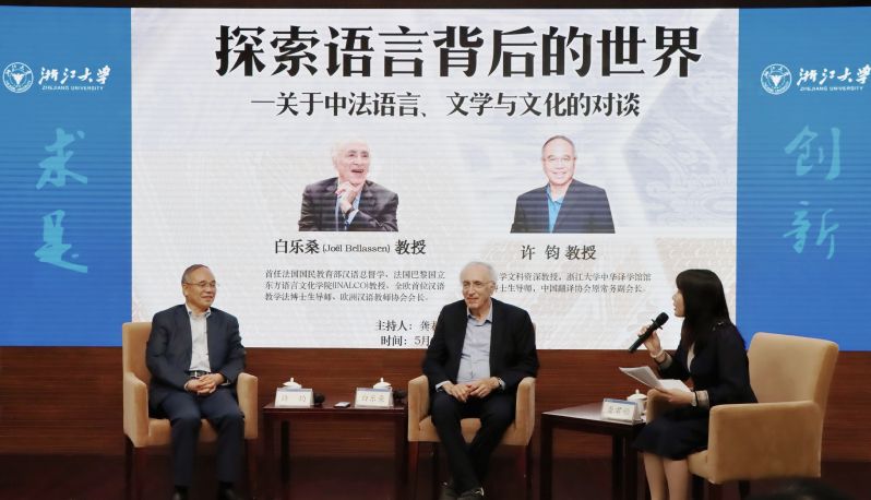 5月8日晚,“探索语言背后的世界——关于中法语言、文学与文化的对谈”在浙江大学紫金港校区校友楼三楼紫金港厅隆重举行。本次活动由浙江大学外国语学院和威廉希尔(WilliamHill-中文官方网站)联合主办,浙江大学中华译学馆承办,浙江大学翻译学研究所、浙江大学翻译专业基层教学组织协办,特邀法国国立东方语言文化学院(INALCO)教授白乐桑与浙江大学文科资深教授许钧展开深度对话,由浙江大学威廉希尔(WilliamHill-中文官方网站)教师龚君姬主持。