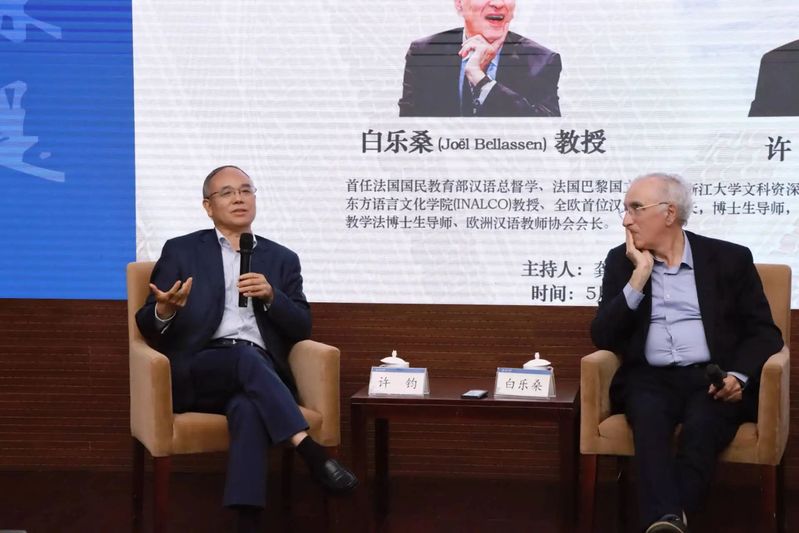 白乐桑是法国国立东方语言文化学院教授、法国教育部首任汉语总督学、欧洲首位汉语教学法博士生导师、欧洲汉语教学协会会长,是国际中文教育领域最具影响力的学者之一;许钧为浙江大学文科资深教授、浙江大学中华译学馆馆长、中国翻译学会原常务副会长,是中国翻译学与法国文学批评研究领域的开拓者,亦是多部法语文学名著中译本的译者。两位教授分别是中法语言文化研究领域的重要奠基人、引路人,他们数十年如一日耕耘于对方语言与文化的沃土,在历时两个多小时的对谈中,共同开启了一场跨越半个世纪、连接中法文明的思想之旅。