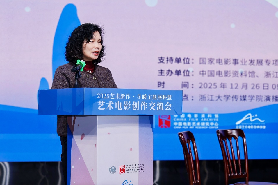 中国电影资料馆党委副书记张旭霞在致辞中表示,杭州作为吴越文化的核心腹地,既是优质的电影取景地,更孕育出兼容并蓄的艺术土壤。全国艺联主题影展多次结缘杭州,今年“时光之镜”“影像之灯”等影展落地期间,杭州观众的热情与鉴赏力令人瞩目,亮眼的票房贡献与场场爆满的观影氛围,印证着这座城市深厚的电影文化积淀与蓬勃的市场活力。她期望本次交流会可以进一步激活杭州电影创作动力,为国产艺术电影的创作发展注入新的生机与活力。