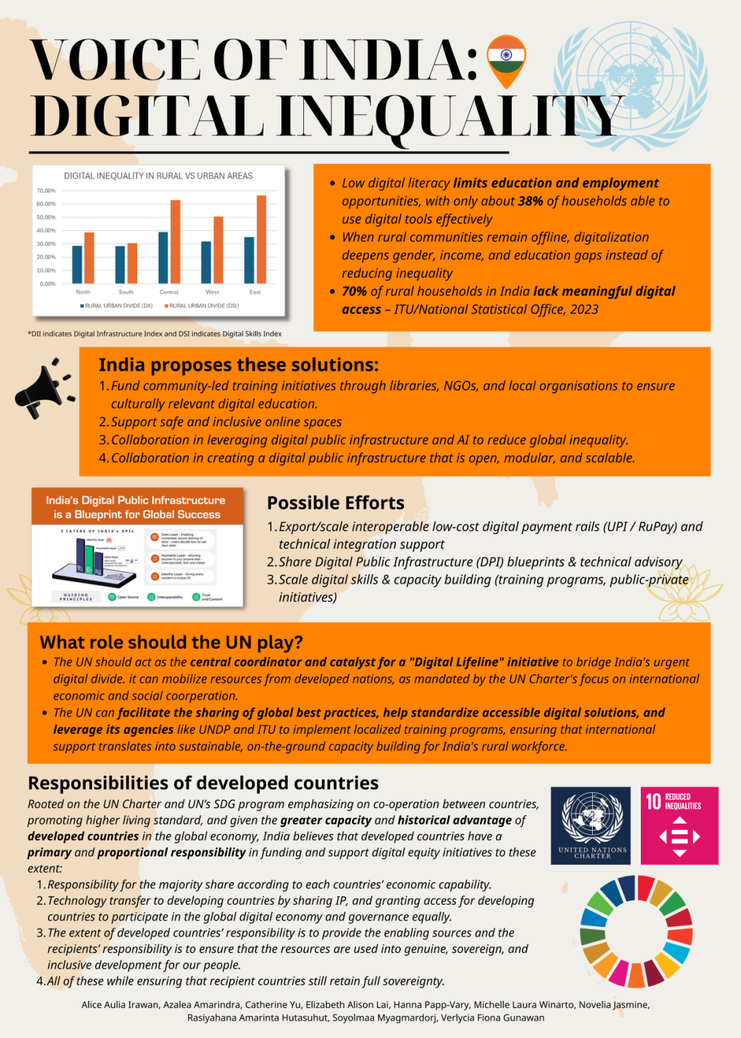 近日,学院和国际联合商学院(ZIBS)、浙江大学国际传播研究中心 共同开设的课程《全球传播》结课。该课程为省级一流本科国际化课程,课程教师赵瑜佩曾以此课程获评浙江省高校教师教学创新大赛特等奖、浙江大学高校创新大赛特等奖。本学期课程以一场聚焦“数字平等”的模拟联合国活动收尾,来自印度尼西亚、泰国、墨西哥、新加坡、越南、克罗地亚、俄罗斯、英国等国的学生组队,深入探讨各国在数字包容、基础设施、技能赋能与治理合作等方面面临的挑战与可行路径。
