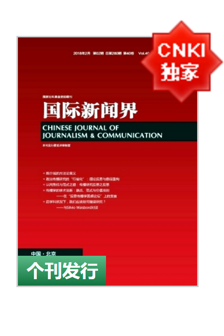 2018-02-23 《国际新闻界》 韦路2018年是改革开放40周年,也是中国传播学迅猛发展的第40个年头。本文通过对全球传播学SSCI期刊论文进行文献分析,希望更加全面地呈现中国传播学研究国际发表的现状。研究发现,中国传播学的国际发表在全球起步较晚,但近10年来发展迅速,论文总量已经跻身全球前十,仅论中国大陆学者发表的论文也可以排到全球15位左右。作者学科来源呈现多元化,新闻传播学科的学者,不论是发表论文的数量,还是被其他学者引用的频次,都未能形成主导性优势。研究视角高度同质化,主要体现在三个领域:以网络成瘾为代表的心理和行为研究,以技术采纳为代表的产业和政策... 更多 -