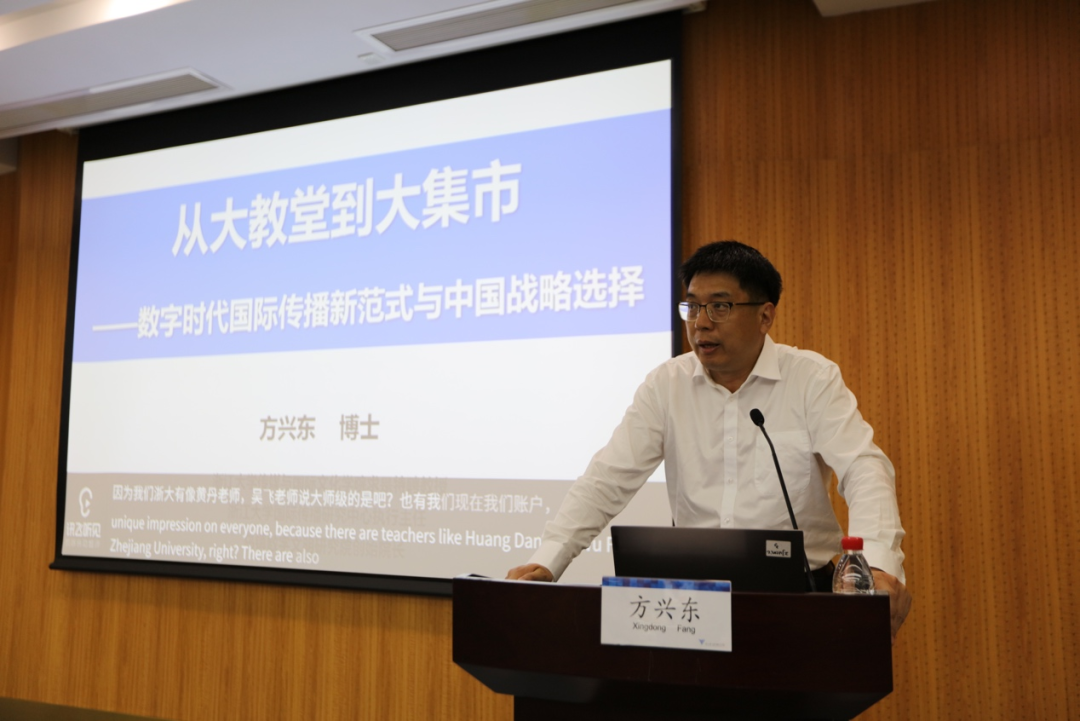 On the morning of July 4th, Professor Fang Xingdong from the School of Media and International Culture at Zhejiang University brought a lecture titled From Cathedral to Bazaar -- New Paradigm of Trajectory Communication in Digital Era and China’s Strategic Choices, hosted by Associate Professor Zhang Hong. Professor Fang initiated the lecture with his recent experiences from a trip to Europe, questioning why the West lacks international communication. In the network era, all domestic communication is international communication, and all state communication is also domestic communication. Therefore, it’s necessary to reassess international communication, which he deemed as a winning or losing hand for China’s journalism and communication discipline. International communication has a Chinese mission and significance as the new global information dissemination pattern has fully formed, and communication is reshaping social order and international order. As an applied discipline, the legitimacy of journalism and communication may be reshaped through international communication.