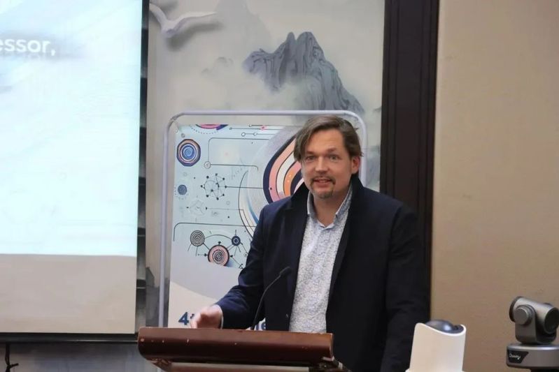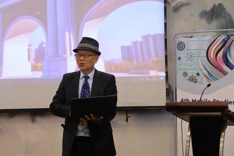 Xiaoge Xu, a professor at Zhejiang Wanli University and the founder of Mobile Studies Congress and Mobile Studies International in Singapore, delivered a report on the intersection of AI and mobile studies. He emphasized that AI is reinventing our identities and work, and that it has a profound impact on the interdisciplinary field of mobile studies encompassing mobile media, mobile objects and mobile communication. He illustrated this by presenting an AI-generated video and discussed the vast potential of AI applications. He hoped that through collaborative efforts, the international mobile studies would be advanced with the usage of AI and mobile technologies.