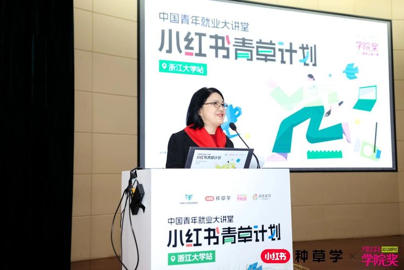 On the morning of May 11, as a key component of the New Media Marketing Talent Professional Skills Competition, the China Youth Employment Lecture Hall · rednote Grass Plan event was successfully held at the LinShui Auditorium on Zhejiang University’s Zijingang Campus. The event was jointly initiated by the China Youth Entrepreneurship and Employment Foundation, rednote’s Grass Planting Academy, the China College Students Advertising Art Festival Academy Awards, and Creative Planet Network, with co-organization by Zhejiang University's College of Media and International Culture and the Qizhen Interdisciplinary Innovation and Entrepreneurship Laboratory.