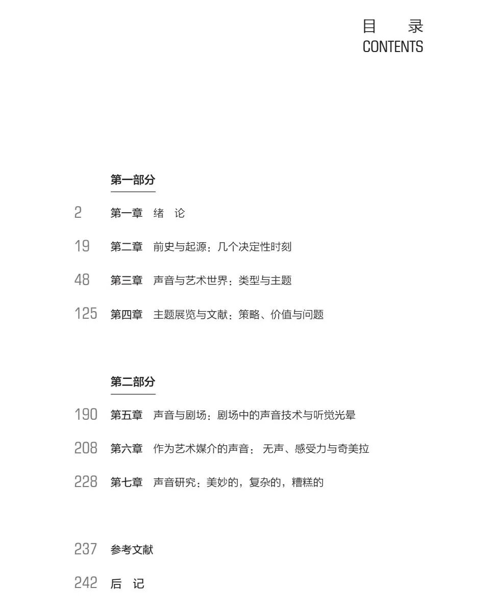 The book is divided into two parts: Part One (Chapters 1–4) returns to the contemporary Chinese art scene, redrawing the intricate network of key works, events, figures and platforms, while establishing a clear chronological timeline of practice through exhibitions and archival materials; Part Two (Chapters 5–7) broadens the perspective internationally. Beginning with ‘auditory installations’ such as voices/tape recorders/headphones within theatrical contexts, it distils core concepts including ‘silence-sensibility-chimera’ and outlines the disciplinary landscape of sound studies.
